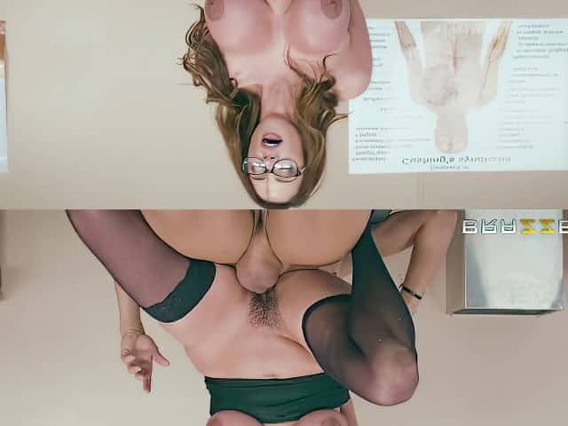 Sexy brunette doctor Raylene sucks her patient's big-cock