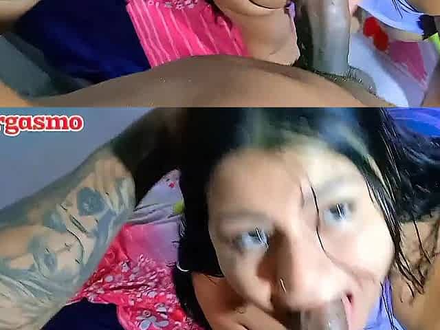 Veo a mi compañero con su gran verga, me caliento y le ayudo para que se venga en mi boca - LARGE PENIS