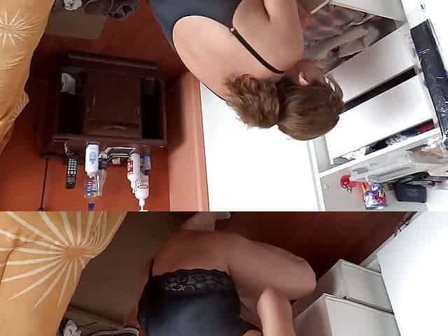 Beautiful Latin stepmother trying on erotic lingerie while stepson records her and masturbates