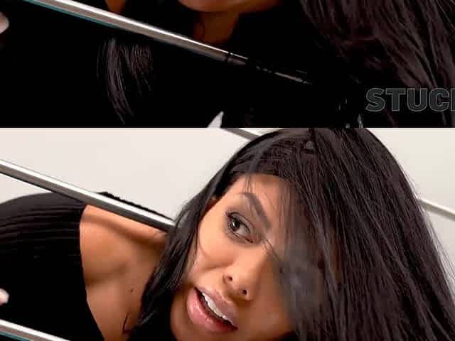 Hot latina girl Canela got stuck in the rails and he came to help