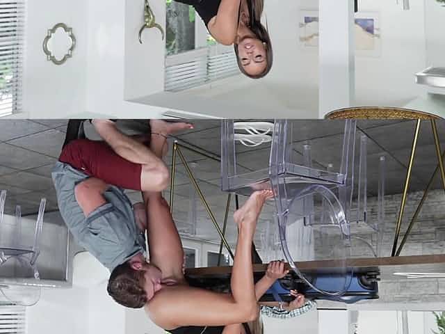 Perv guy pussylicks and fucks her busty latina stepom