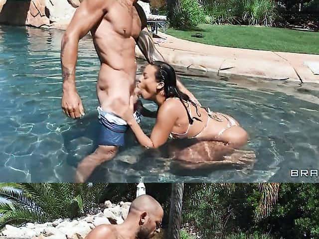 Busty brunette doll Luna Star fucked by the pool as she likes