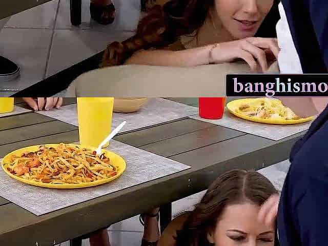 I put my rod in my stepmom's throat and that babe begins sucking. Part two