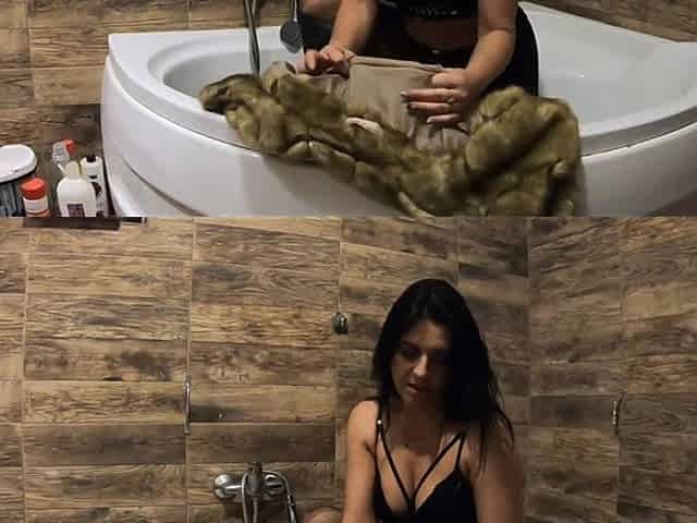 Milfycalla- Pee Play in Bathtub While Wearing a Fur Coat and Pantyhose