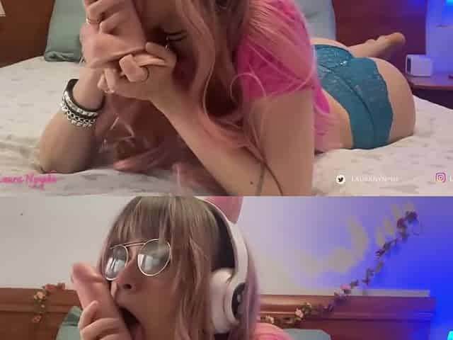 Ninfetinha Laura Souza mamando o namorado durante uma live