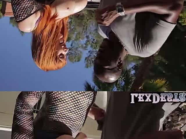 Outdoors video of pale redhead model Lauren Phillips having sex