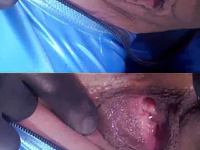 Multiple cumming into extreme tight leather pussy