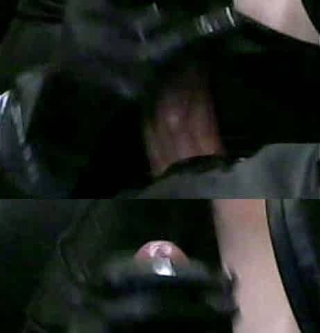 Blowjob with leather gloves