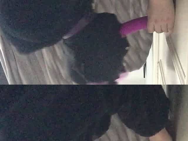 Brunette Thena plays with her strap-on