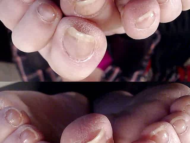 Closeup long real toenails