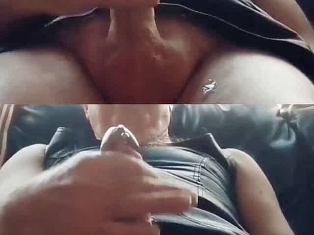 Leather leggings assjob, doggystyle humping, tight pants