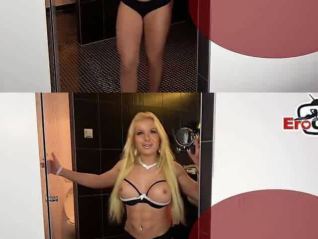 Sexy golden-haired tastes double penetration