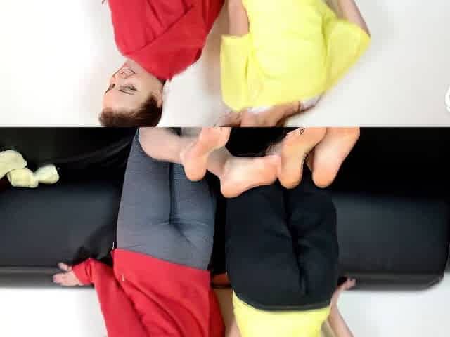 Wonderful College Babes Flaunt Their Pretty Feet On The Leather Sofa