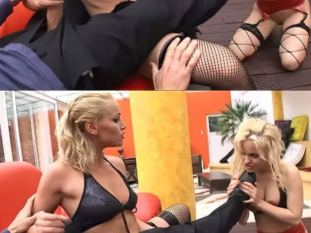 Fake Tits Lesbians in Leather Enjoy Licking Pussies
