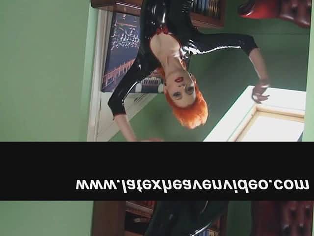Leather fetish redhead babe Ulorin Vex takes off her tight shirt
