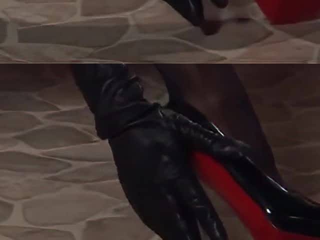 LEATHER GLOVED WOMAN MASTURBATES
