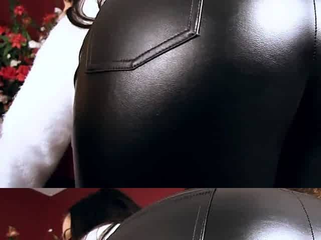 Hot Colleague In Leather Pants Teases Her Fat Cameltoe
