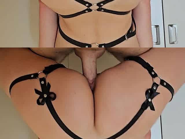 Pussy In Leather Lingerie Bounces On Cock And Cums On The Bed 4 Min
