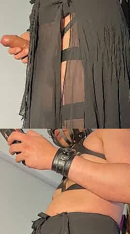 Red XXX masturbating in a leather outfit