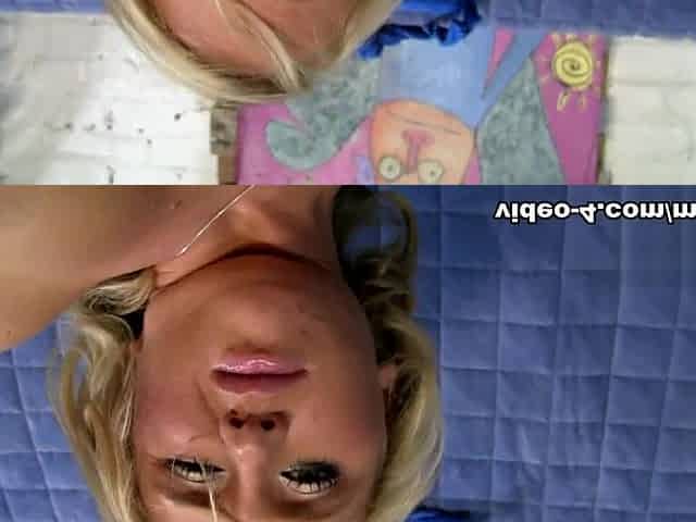 Barely legal blonde teen giving a sloppy blowjob and swallows cum