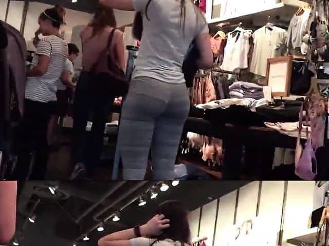 Great Ass In Tight Dark Leggings At A Store