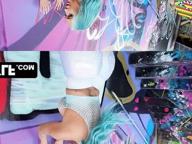 Inked babe pulls down her shiny leggings for hardcore thrashing