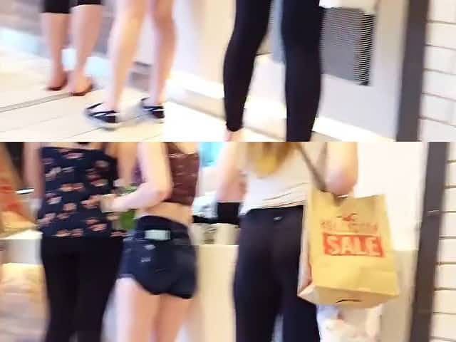 Candid teen great ass black leggings shopping