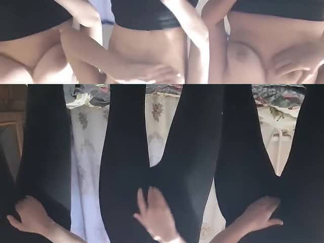Toned breasty gf in leggings squeezed a dong with a constricted twat