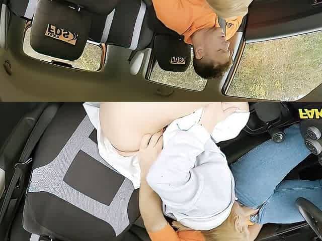 Quick backseat sex with a long-legged busty MILF Lucky Chance