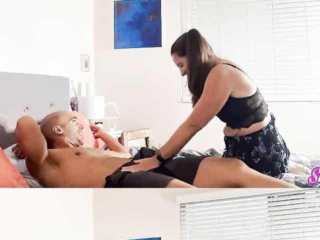 Impressive interracial dick-riding with a hot busty girlfriend Bianca Burke