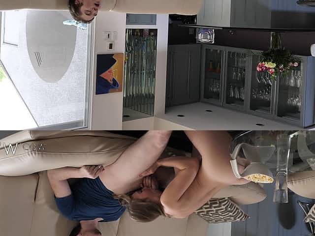 Horny blonde wife Lena Paul teases and gets fucked in mouth and pussy