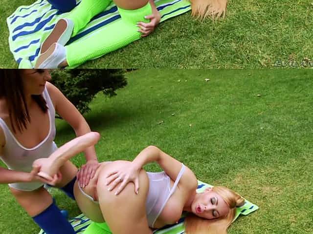 Girls are testing a bit of anal in soft outdoor lezzie play