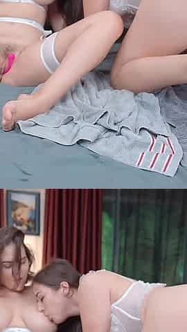 Steamy lesbian femmes explore each other, finger and lick their way to orgasm after some hot kissing