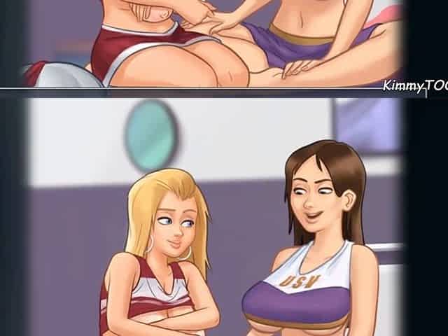 Cartoon girls' group action and pleasure session