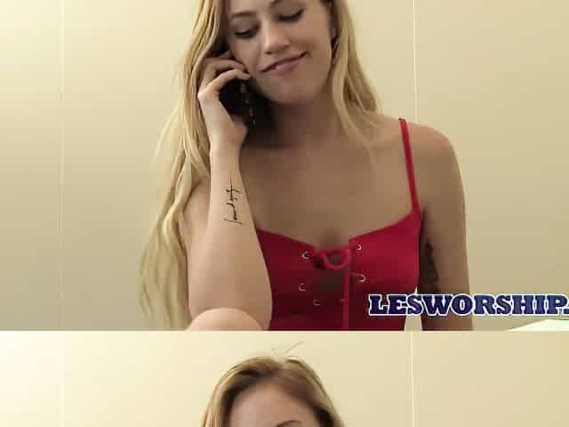 Lesbea Hawt blond lesbos eating twat in the washroom and bedroom