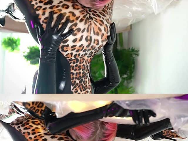 Mistress plays dominant with slave girl dressed in latex costume