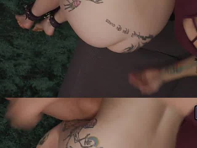 Femdom les licking pussy outdoors