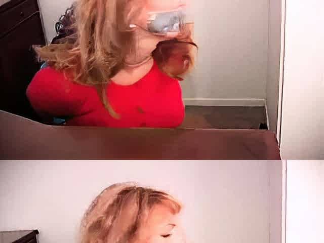 Slutty blonde secretary with big boobs explores her bondage fantasies