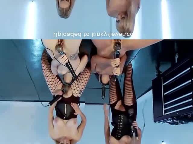 BDSM anal gaping lesbian spreads ass in threesome with mirror