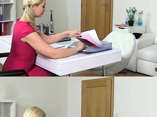 Female agent eats cunt to blonde babe