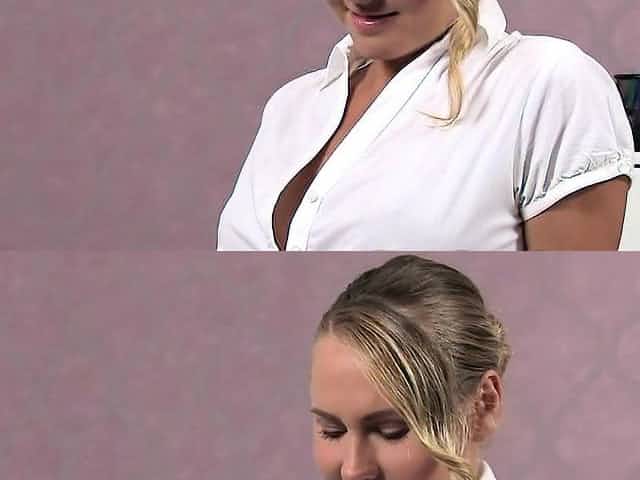 Curvy busty blonde has lesbian casting