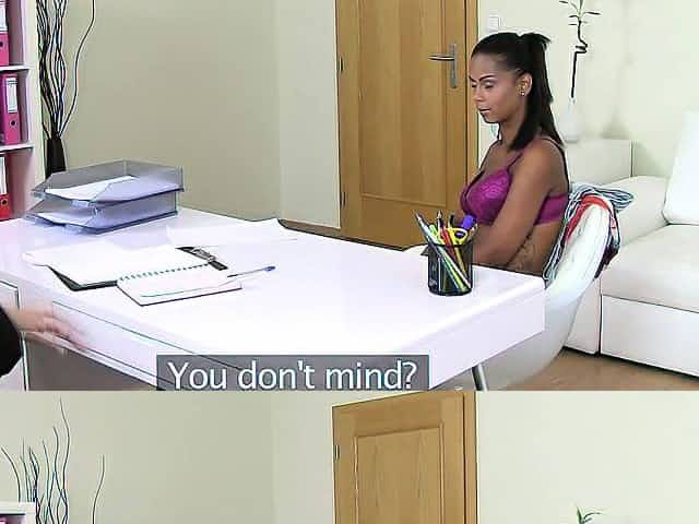 Lesbian casting agent licking out ebony pussy