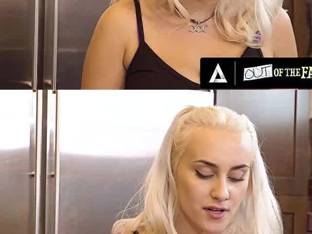 Busty blonde puts on a strap on and fucks her slim stepdaughter