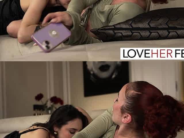 Beautiful milf Mia Trejsi and her girlfriend’s lingerie clad bodies in foot fetish scene.
