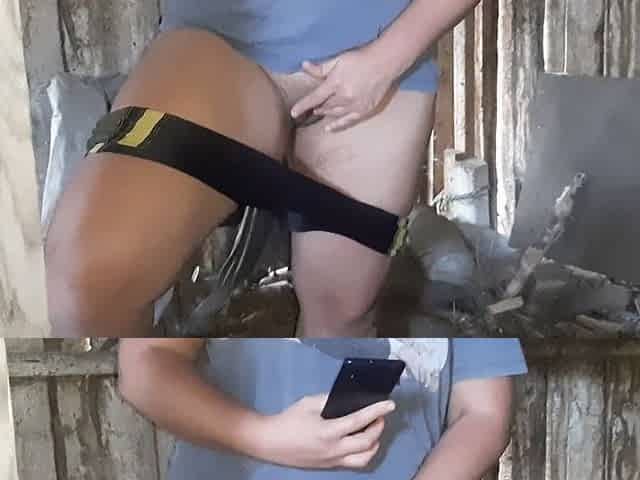 Trembling orgasm, outdoor