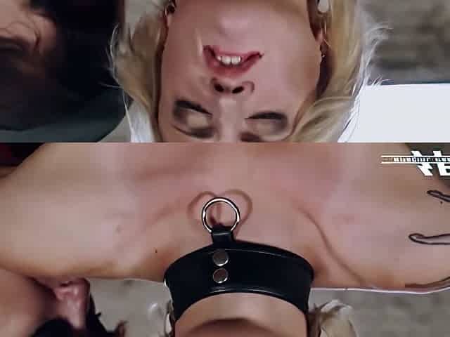 Brunette woman dominates enslaved blonde after restraining her