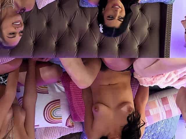 Monica Sweet and Yoha Galvez having sleepover foursome lesbian sex