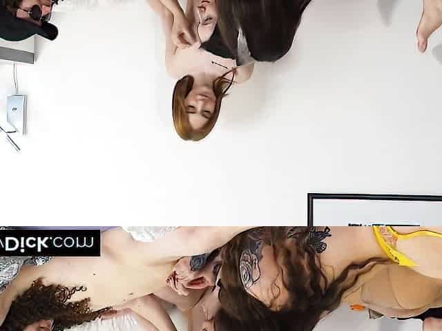 Steamy foursome lesbian fuck with three skinny teen and a busty redhead MILF