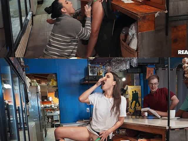 Sandy Love and Lola Aiko play with the dildo in the bar