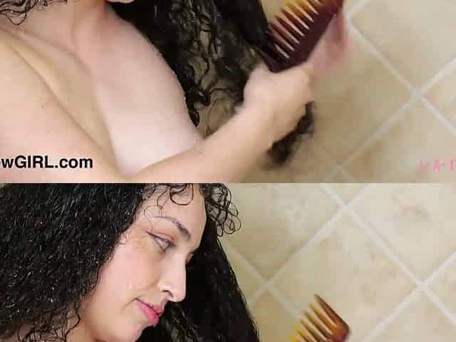 Gorgeous brunette took a shower